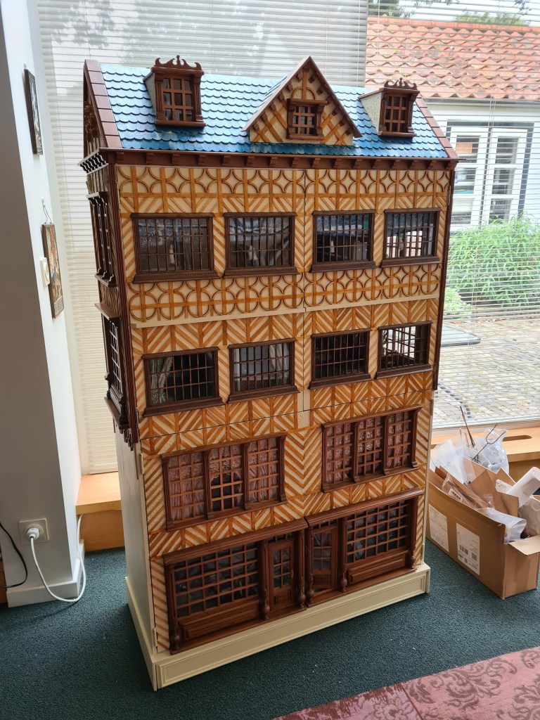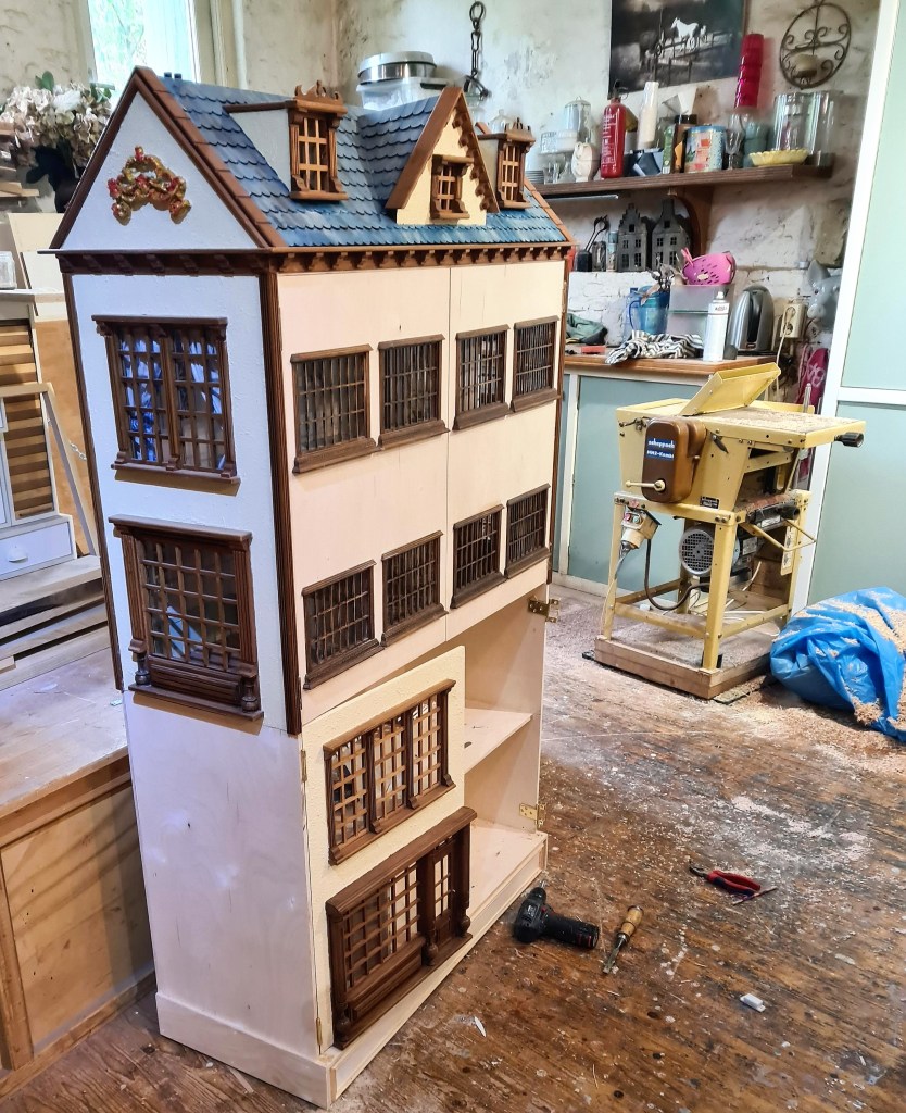 When I bought the house, the inside was bare. He had tiled the upper floor with tiles that were rather large and not to scale. They were a bland grey. The bottom floor was covered with lovely terracotta tiles. I kept them in place. Eventually, I created the kitchen area there. The rooms are 90 x 35 cm. There was no partitioning of room spaces. This lack of partitioning was one of the things that drew me to the house in the first instance. I wanted decent sized rooms so I could decorate and fill to my pleasure. Still, it was not long before I decided. The house was not going to be big enough for my grand design. I started thinking about how I could increase the size of the house. Then, I began to search for someone who could bring my vision to life. I found a carpenter via a friend in Amersfoort, The Netherlands. His name was Jan Landsjeer. He built two more floors for me. He also added a draw on wheels at the base for storage. This made it easy to manoeuvre.
