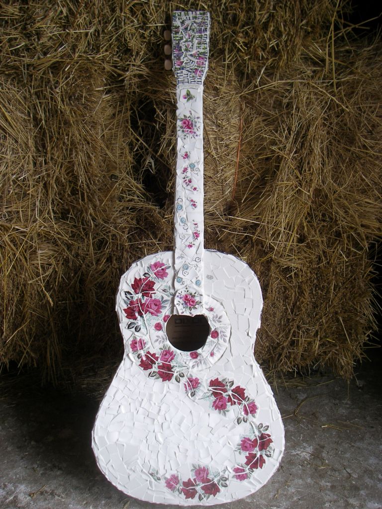 Transforming Guitars into Art with Mosaics sarahsartdiaryDecember 19, 2025Mosaic Art Post navigation PreviousNext I went through a phase of mosaicing musical instruments with fine bone china…. here are the results. Spanish Guitars Back of a Guitar Delft Blue Cello Share this: Print (Opens in new window) Print Share on Pinterest (Opens in new window) Pinterest Share on WhatsApp (Opens in new window) WhatsApp Share on LinkedIn (Opens in new window) LinkedIn Share on Facebook (Opens in new window) Facebook Email a link to a friend (Opens in new window) Email More Share on X (Opens in new window) X Share on Tumblr (Opens in new window) Tumblr Like Loading... Related