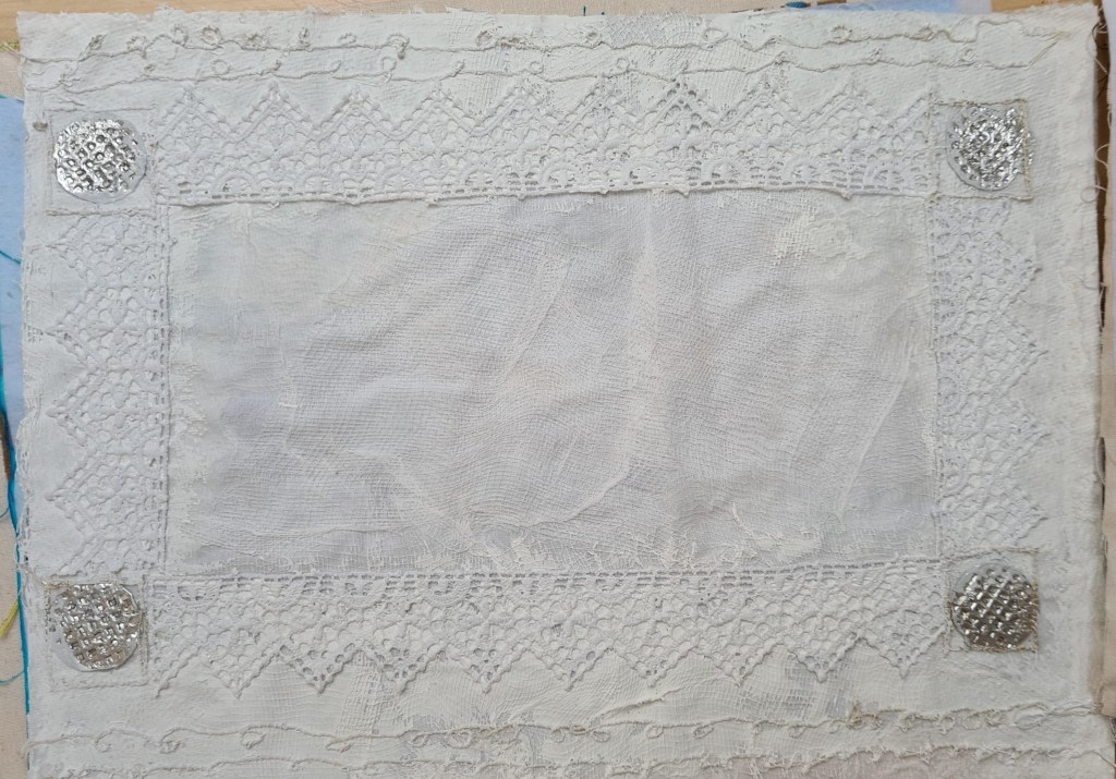 - Once dry you can stitch the elements together using a sewing machine as well as adding additional stitches (e.g. cable stitch, corded whip stitch, vermicelli cable stitch etc.) and embroidery elements. You can also add hand embroidery if you wish. Stitching ensures that everything stays where it should.