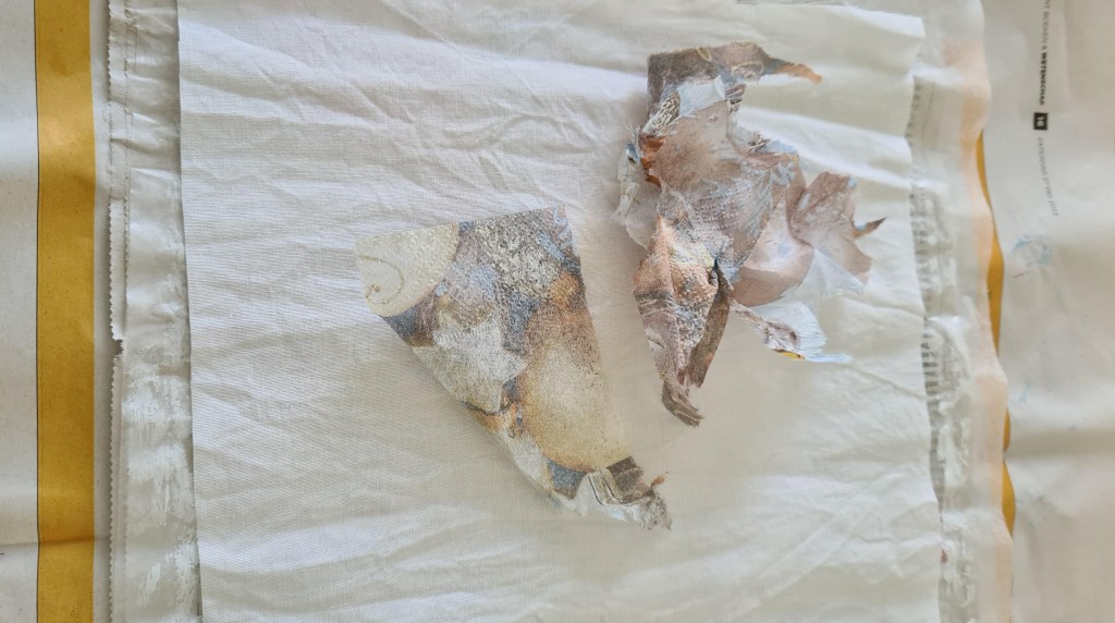 - Wring out and hang out to dry overnight. Do not flatten but allow to dry wrinkled. This will add to the texture of the piece.