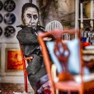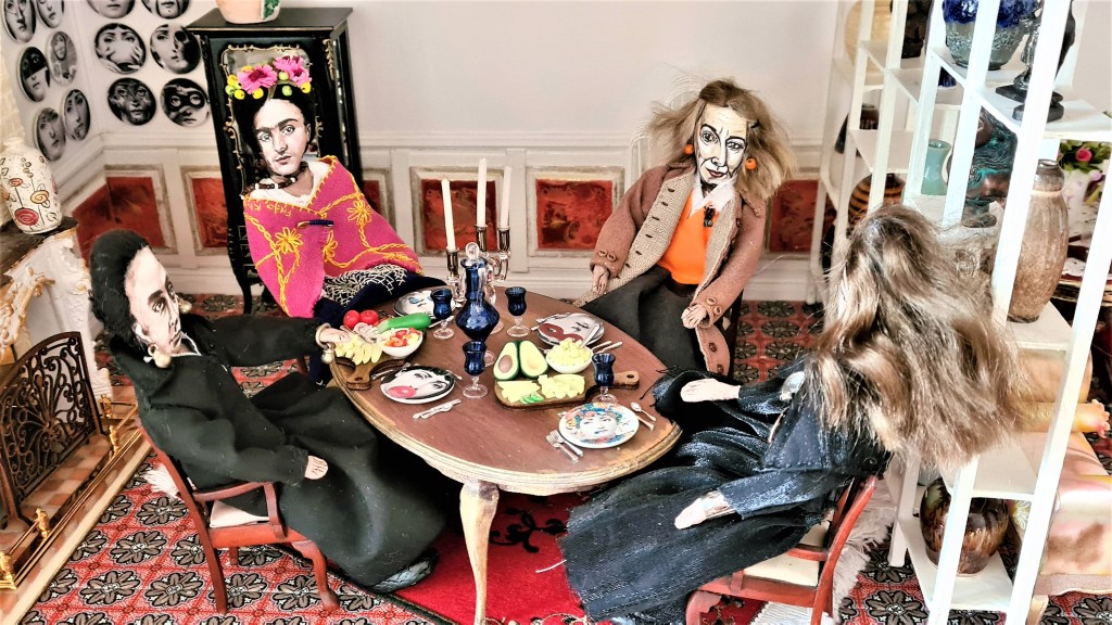 The ladies have come over for dinner. This dinner spans the time divide of some 130 years. This is a dolls’ house so anything is possible. They have come together to celebrate female creativity and excellence.